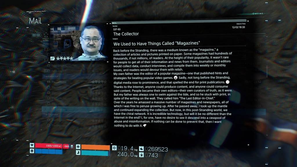 Kojima’s name has become synonymous with cinema. His love of film is well-documented—both in and out of his games. Not only does he routinely upload movie theater selfies to his Twitter, but he’s made a habit of casting well-known actors (Kiefer Sutherland, Norman Reedus, Léa Seydoux, etc.) in his games. But for his Hollywood bluster, the thing that makes a Kojima game a Kojima game is more pedestrian than the movies he seeks to emulate: it’s database entries.